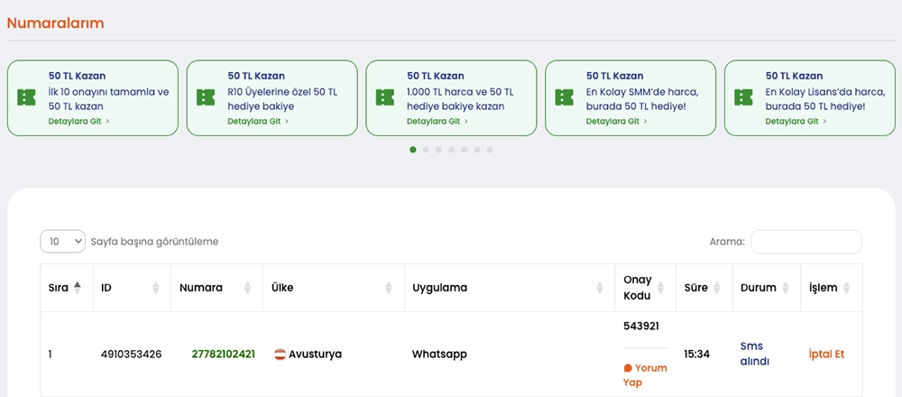 SMS doğrulamalarınızı hemen alabilirsiniz.