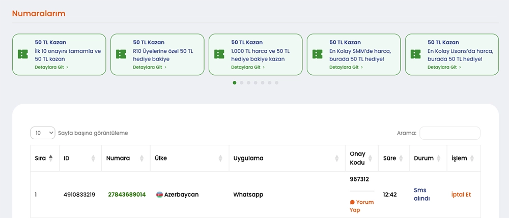 Sanal numaranızı aldıktan sonra, seçtiğiniz platformda doğrulama başlatın. Gelen SMS birkaç saniye içinde panelinizde görünecektir.