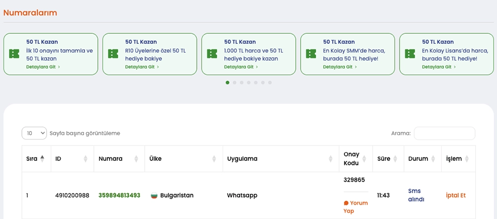 • WhatsApp, Telegram, Google, Instagram, TikTok gibi uygulamalarda SMS doğrulama yapmak
