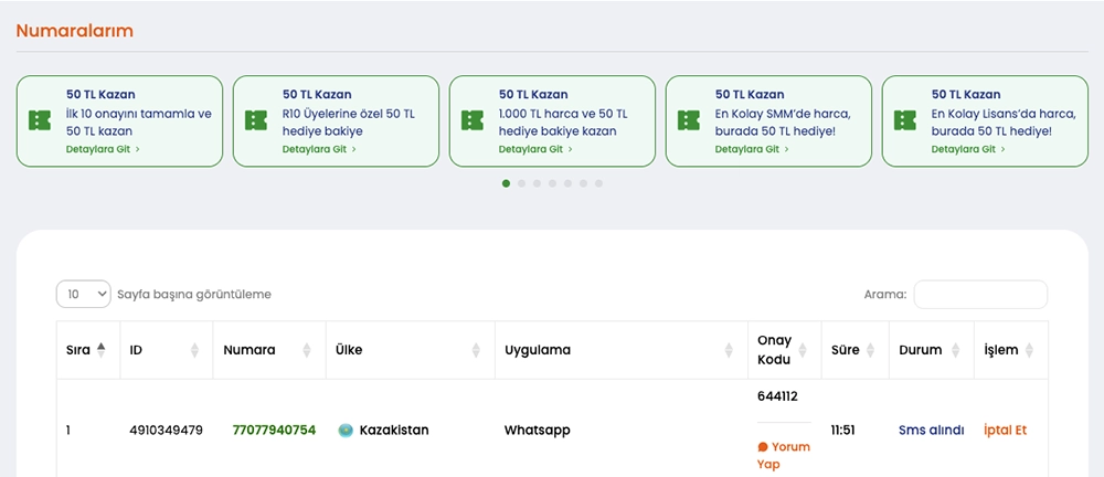 Bu sayede Kazakistan’da olmasanız bile, +7 ülke koduna sahip bir sanal numara üzerinden doğrulama yapabilirsiniz.